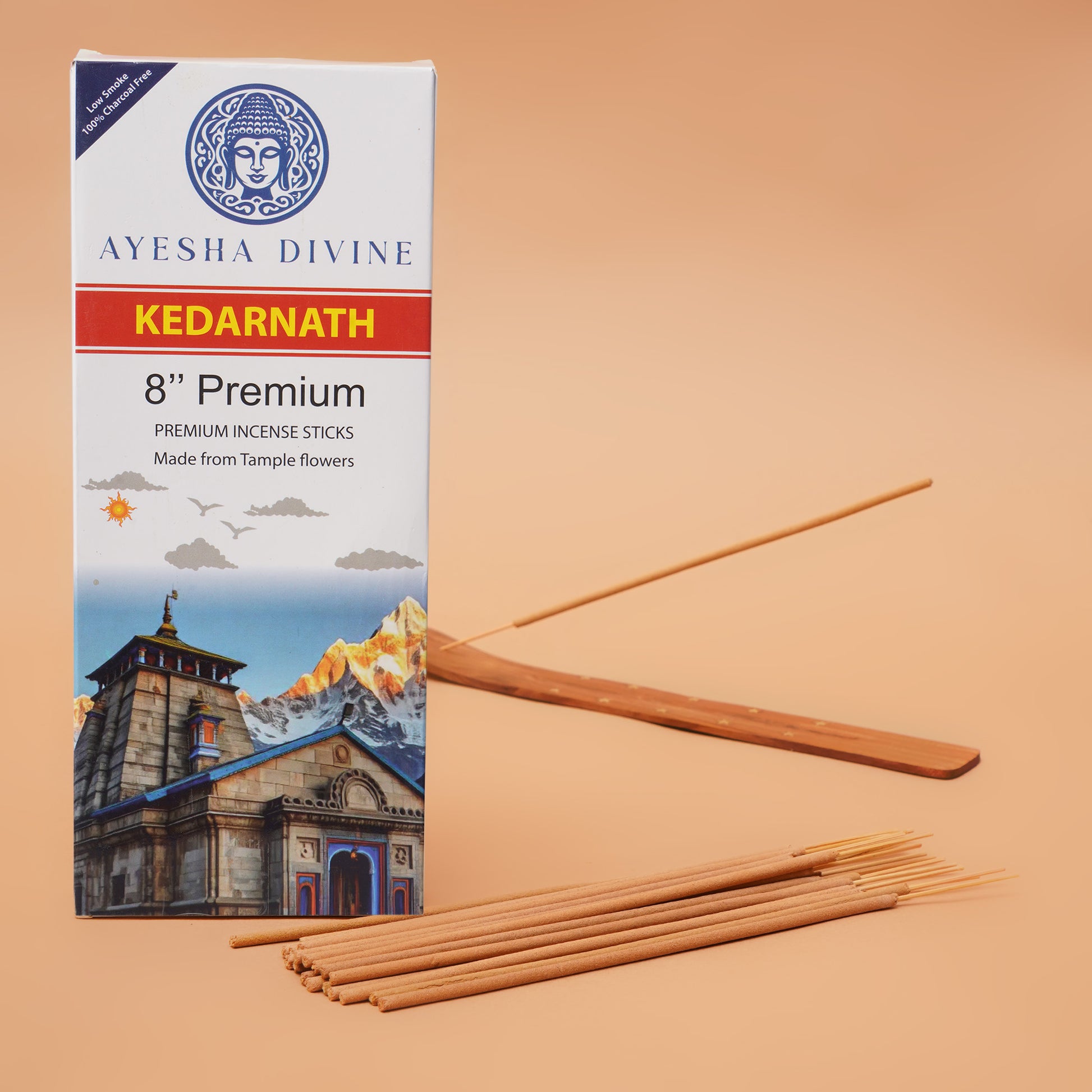 Crafted from temple flowers, Ayurvedic herbs, and natural resins, Ayesha Divine’s Kedarnath Premium Incense Sticks carry the power of purity and devotion. Each hand-rolled 8-inch incense stick offers a long-lasting fragrance with a clean, soothing burn that fills your space with tranquility and positivity.